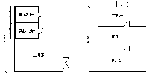 如上图所述,两个屏蔽机房被套装在主机房内。灭火分区划分出现两种不同意见,一种意见是将三个房间划成一个区域采用全淹没单元独立系统进行灭火,也***是说三个区域中任何一个发生火灾时三个房间同时发出警报并同时喷放药剂;另外一种意见是将这三个房间当成三个独立的防火分区,采用一套组合分配全淹没灭火系统,任何一个房间发生火灾时三个房间同时报警,但系统只向发生火灾的区域喷放灭火药剂。前者意见使用药剂量要大于后者,三个房间实际被当作一个独立的灭火区对待,基本无太多异议,但投资相对后者要高;后者情况需要我们模拟火灾现场后再定,若机房1着火,全部房间报警,人员全部撤离,药剂只输送到机房1,若主机房发生火灾,全部房间报警,人员全部撤离,药剂只输送到主机房,基本无任何危险情况发生,警报区域和范围依照《火灾自动报警系统设计规范》4.2.1.1化为一个报警区域,灭火区域划分为三个独立的保护区,并按照气体保护区要求设置外开门及围护结构。所以后者方案从使用和投资方面讲更合理。