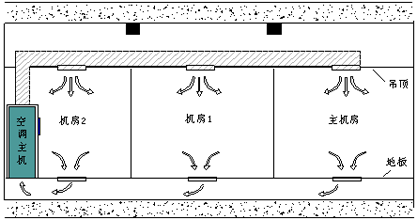 如下图所示,若三个房间从吊顶到地板都采用独立的空调系统,那么将机房1和机房2划作一个区域或划为两个单独灭火区都是可行的。但如果采用一台精密空调为三个房间服务且为“上送风,地板下回风”方式这三个房间***必须划分成一个灭火区域,药剂储备应该是上者的3倍或1.5倍,对工程的投资影响是比较大的。除过灭火剂和喷放管道布置要作为一个保护区考虑外,探测范围也应该分块进行探测但还是一个探测区域,警报区域也应该按照一个区域来设置和联动。